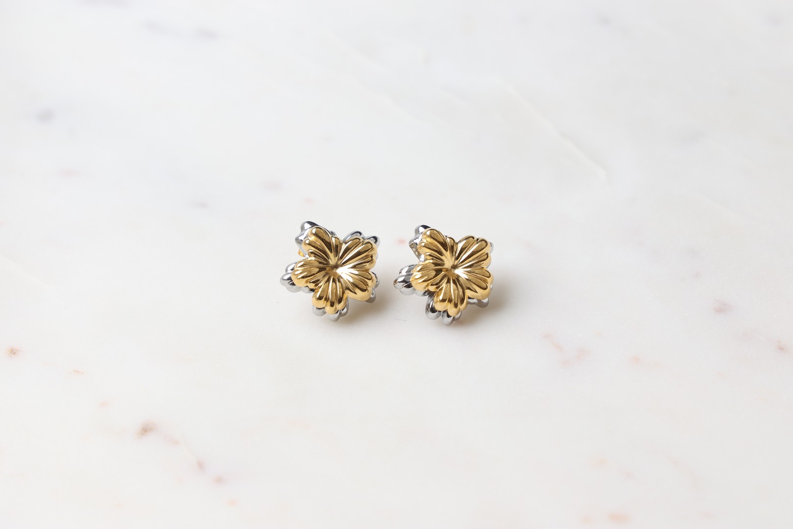 Σετ σκουλαρίκια καρφωτά σε σχήμα λουλουδιού από ανοξείδωτο ατσάλι σε μιξ χρωμάτων , ασημί και χρυσό.