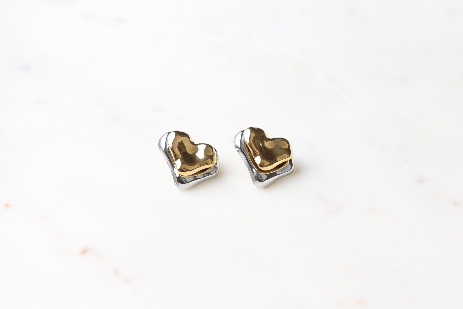 Σετ σκουλαρίκια καρφωτά σε σχήμα τετράγωνο από ανοξείδωτο ατσάλι σε μιξ χρωμάτων , ασημί και χρυσό.
