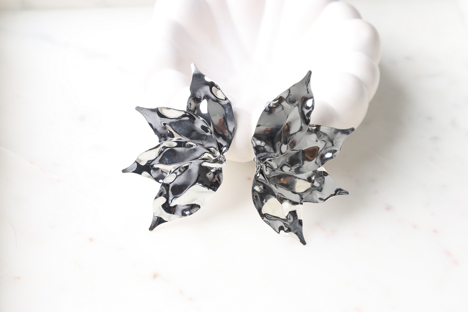 Σετ σκουλαρίκια καρφωτά , σε σχήμα πέταλλα λουλουδιού από φύλλα μετάλλου σε χρυσό χρώμα .